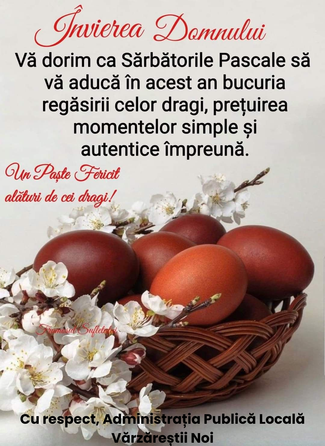 Primăria satului Vărzăreştii Noi, cu ocazia sărbătorilor pascale !!!